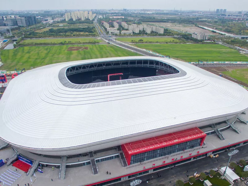 Tsarin tsarin filin wasan Stadium ya juya kusa da tsarin ƙarfe wanda ke tallafawa gaba daya wurin. Ana amfani da katako da katako da katako don ƙirƙirar tsari mai tsayayyen tsari wanda zai iya jure yanayin yanayin yanayi da kuma nauyin dubban masu kallo. Tsarin karfe kuma yana ba da damar ƙirƙirar wuraren buɗe ido da sararin samaniya, tabbatar da iska mai kyau da shigarwar yanayi.